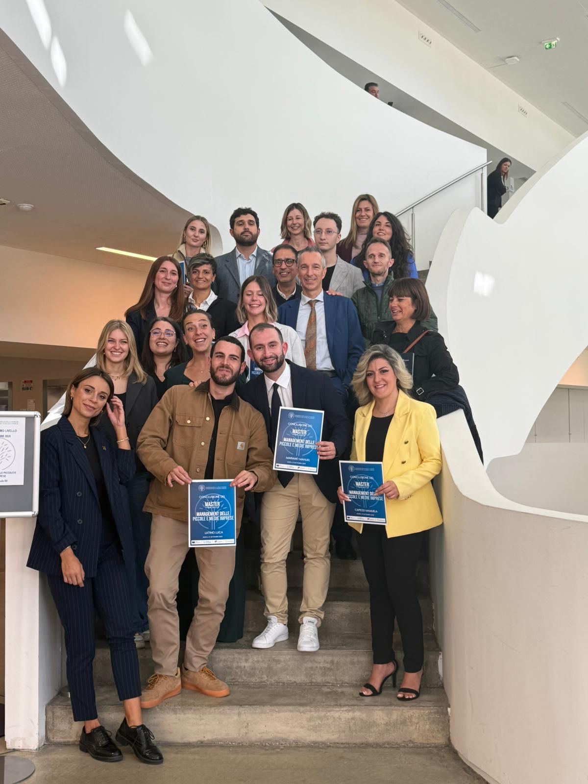 Diciassette studentesse e studenti hanno concluso il percorso, nato con l’obiettivo di fornire conoscenze e competenze manageriali avanzate, mirate a offrire strumenti concreti per affrontare le grandi sfide della moderna organizzazione del lavoro, della transizione digitale e dello sviluppo sostenibile a livello ambientale, sociale e di governance.