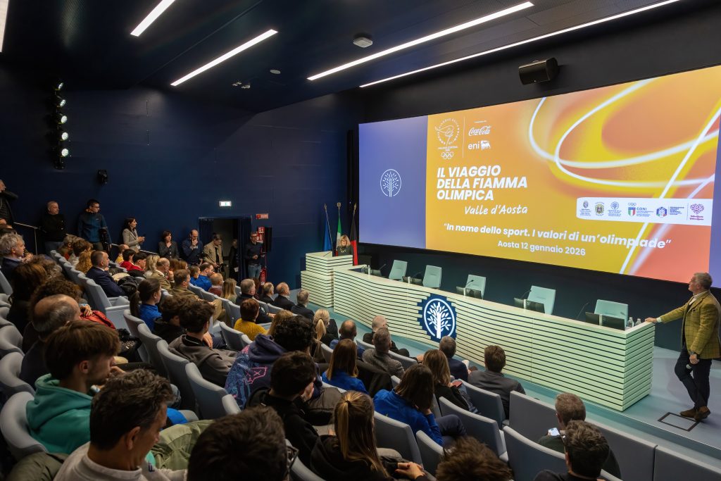 Ieri sera, lunedì 12 gennaio, il viaggio della Fiamma Olimpica nella città di Aosta si è concluso all’Università della Valle d’Aosta. Ad accendere il braciere è stato l’atleta valdostano Federico Pellegrino, campione di sci nordico.